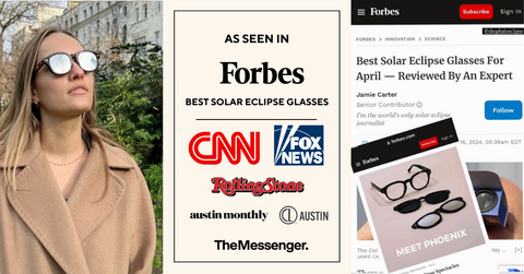Who knew eclipse glasses could be so chic? The Phoenix glasses are not only fashionable but also incredibly functional. With interchangeable lenses and top-notch safety certifications, they're the perfect blend of style and substance. I can't wait to rock them in April!